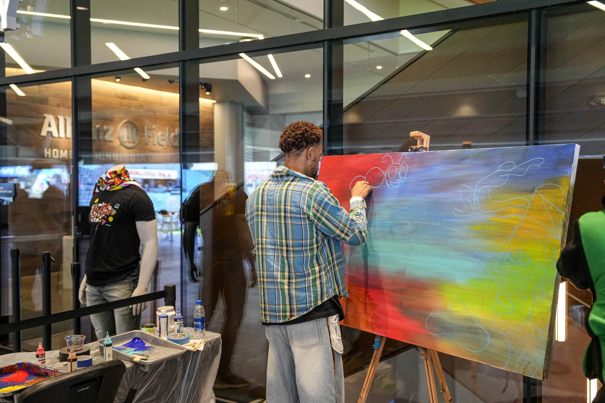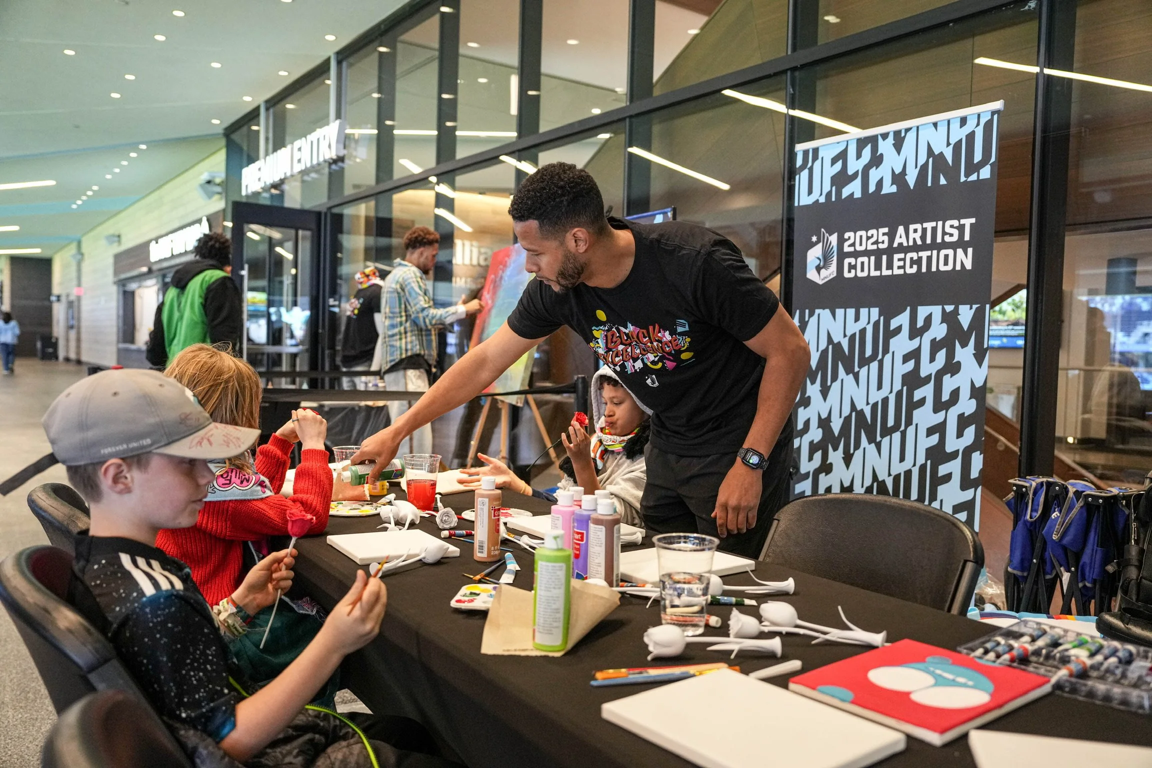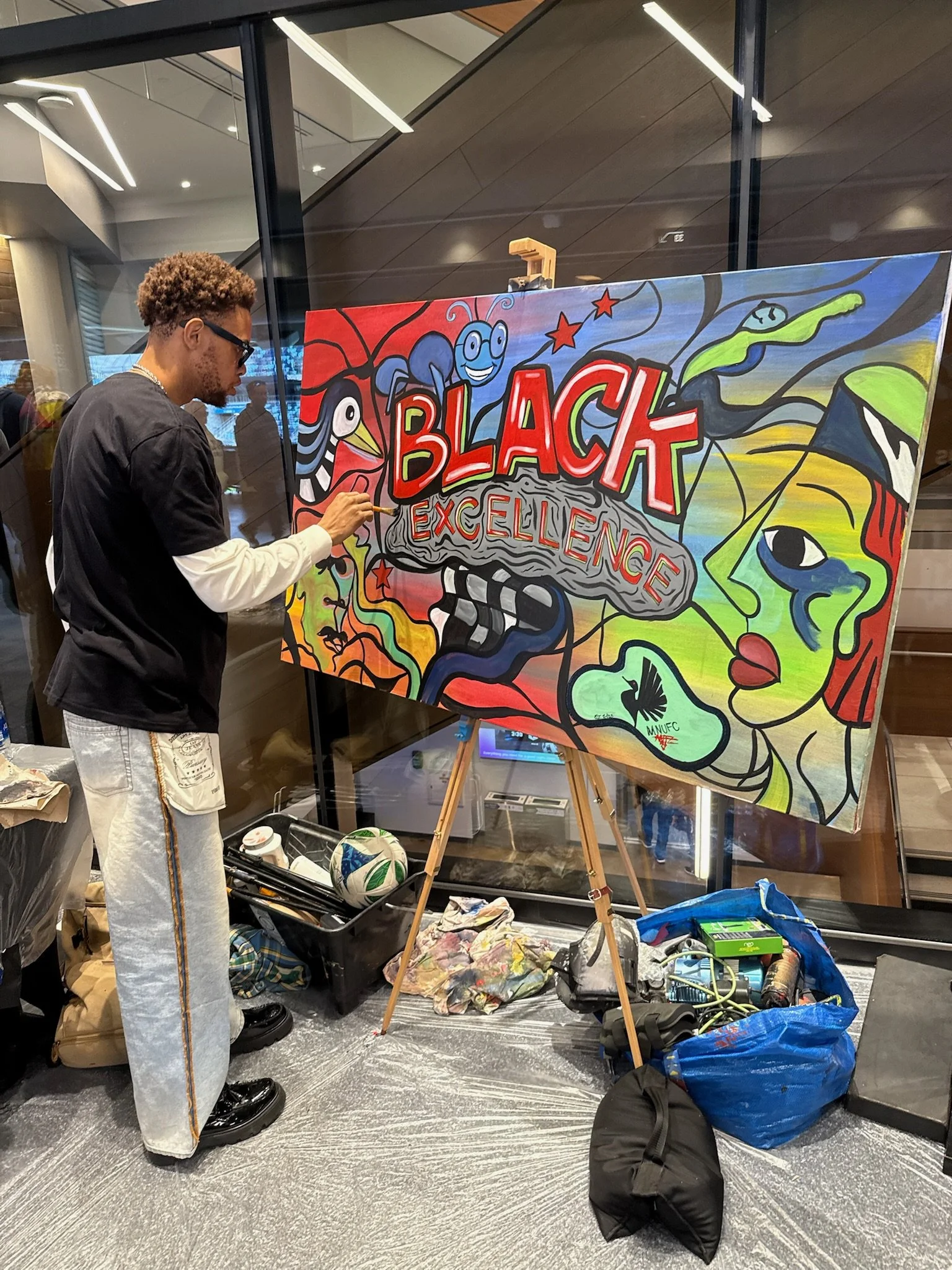 Modern Day Me curated five Twin Cities–based artists, each aligned with a game theme—Mental Health Awareness, Black Excellence, Pride, Hispanic Heritage, and Indigenous Heritage. Each artist designed exclusive merchandise and created live art installations at Allianz Field, giving fans opportunities to meet creators, experience art in real time, and take home meaningful pieces that reflected culture and identity.