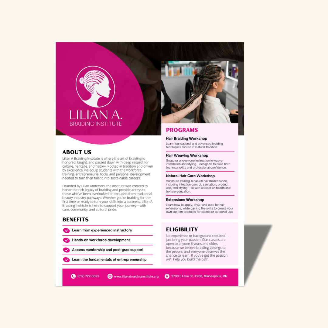 Marketing & Branding Metro Blooms Unstoppable Strength & Pilates Moonstone MIDTOWN BARBERS Lilian A. Braiding Institute MOROCCAN FLAVORS Dr. Ayanna Quamina UNFILTERED FUTURES